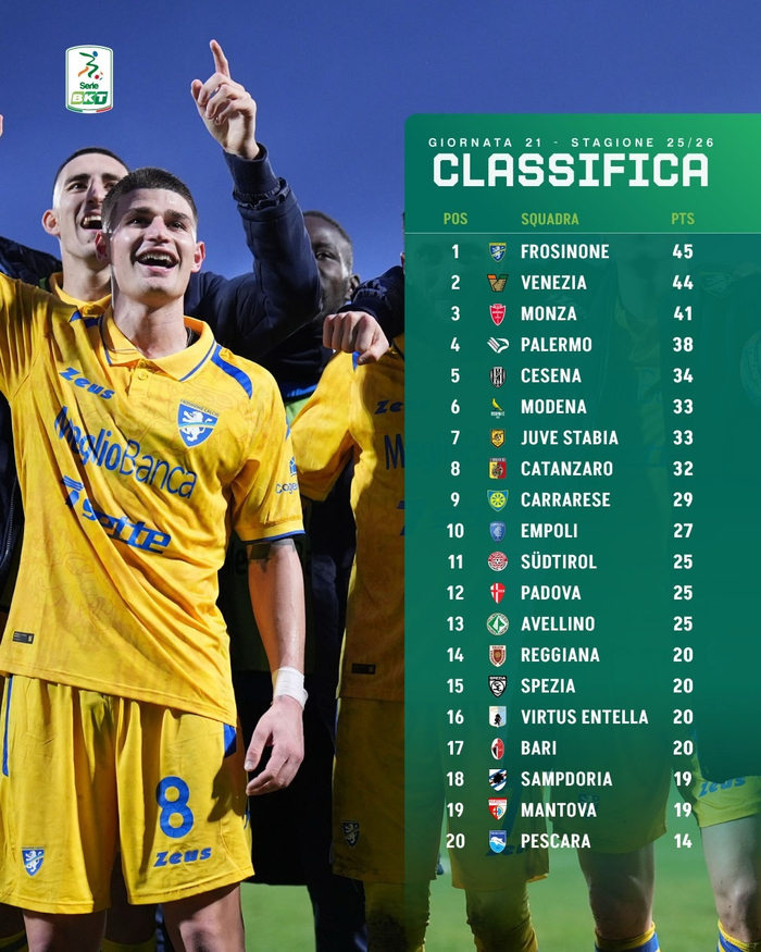 博鱼官网-意乙第21轮积分榜:威尼斯44分居次席,巴勒莫38分第四|ac米兰|意乙联赛|菲利普-因扎吉|斯佩齐亚|意乙积分榜_新浪体育_新浪新闻